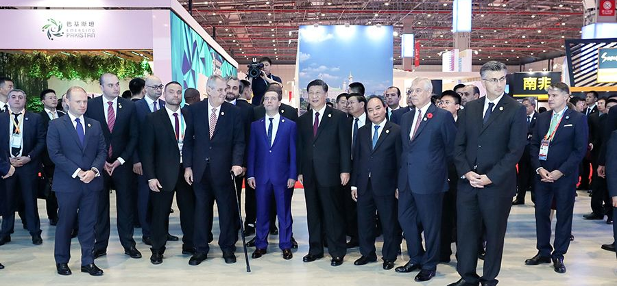 习近平同出席首届中国国际进口博览会的外国领导人共同巡馆