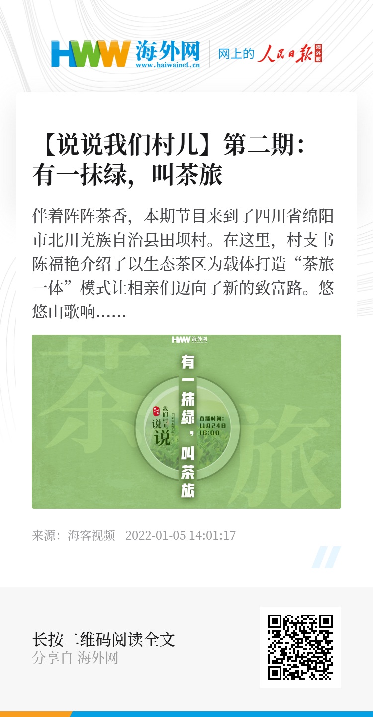伴着阵阵茶香,本期节目来到了四川省绵阳市北川羌族自治县田坝村。在这里,村支书陈福艳介绍了以生态茶区为载体打造“茶旅一体”模式让相亲们迈向了新的致富路。悠悠山歌响特产味美香,除了茶叶,来到田坝村还可以体验手工灌肠。村民们盼望更多的人来田坝村游览观光。