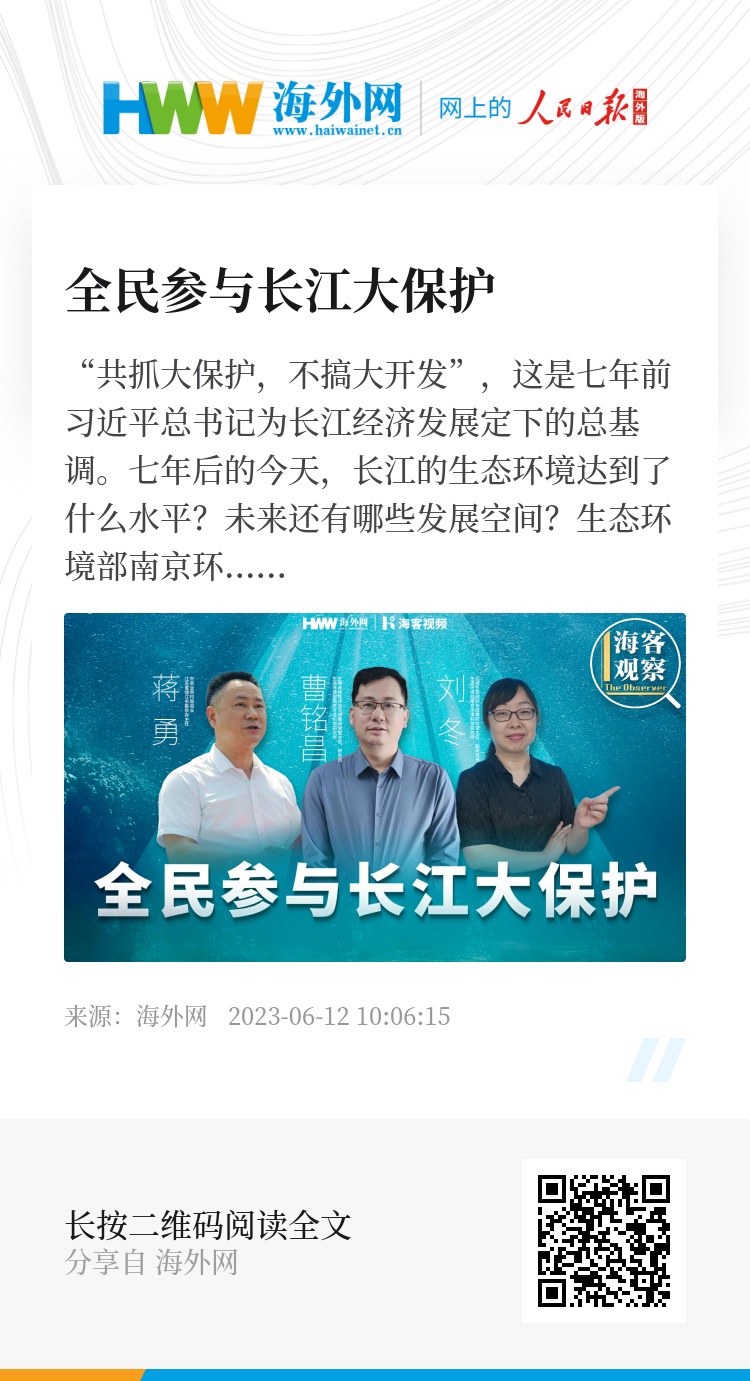 “共抓大保护,不搞大开发”,这是七年前习近平总书记为长江经济发展定下的总基调。七年后的今天,长江的生态环境达到了什么水平?未来还有哪些发展空间?生态环境部南京环境研究所 生物多样性评估与预警研究室主任、研究员曹铭昌、生态环境部南京环境研究所 区域生态规划与政策研究室主任、副研究员刘冬和江苏省镇江市委农办主任、市农业局局长蒋勇做客本期《海客观察》,探讨长江保护工作如何行稳致远。