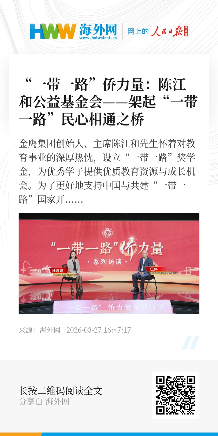 “一带一路”侨力量:陈江和公益基金会——架起“一带一路”民心相通之桥