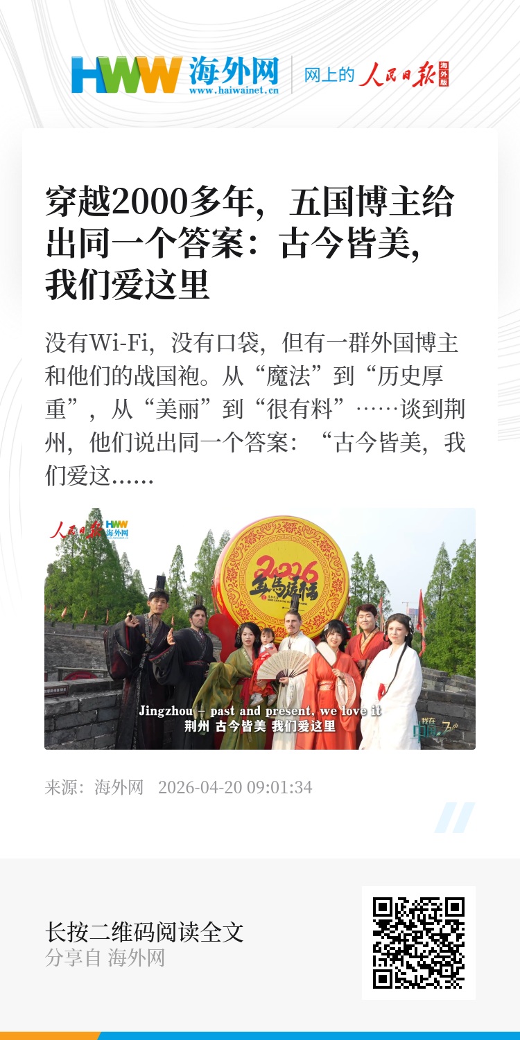 没有Wi-Fi,没有口袋,但有一群外国博主和他们的战国袍。从“魔法”到“历史厚重”,从“美丽”到“很有料”……谈到荆州,他们说出同一个答案:“古今皆美,我们爱这里。”#我在中国的72小时
